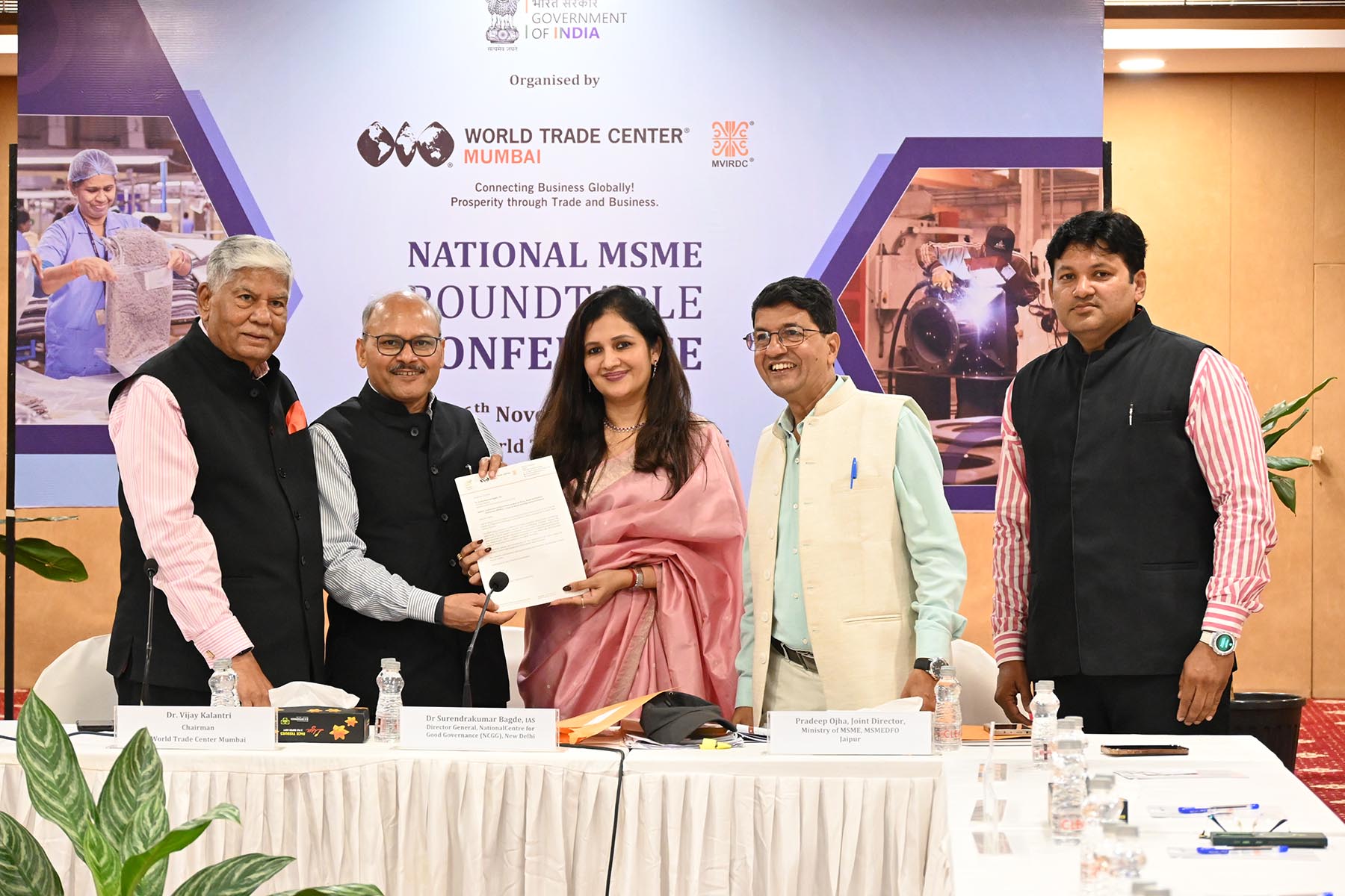 (From Left to right) Dr. Vijay Kalantri, Chairman, World Trade Centre Mumbai and President, All India Association of Industries (AIAI), Surendra Kumar Bagde, IAS, Director General, National Centre for Good Governance; Ms. Priya Pansare, Director, Trade and Investment Promotion, World Trade Centre, Mumbai; Pradeep Ojha, Joint Director, Ministry of MSME