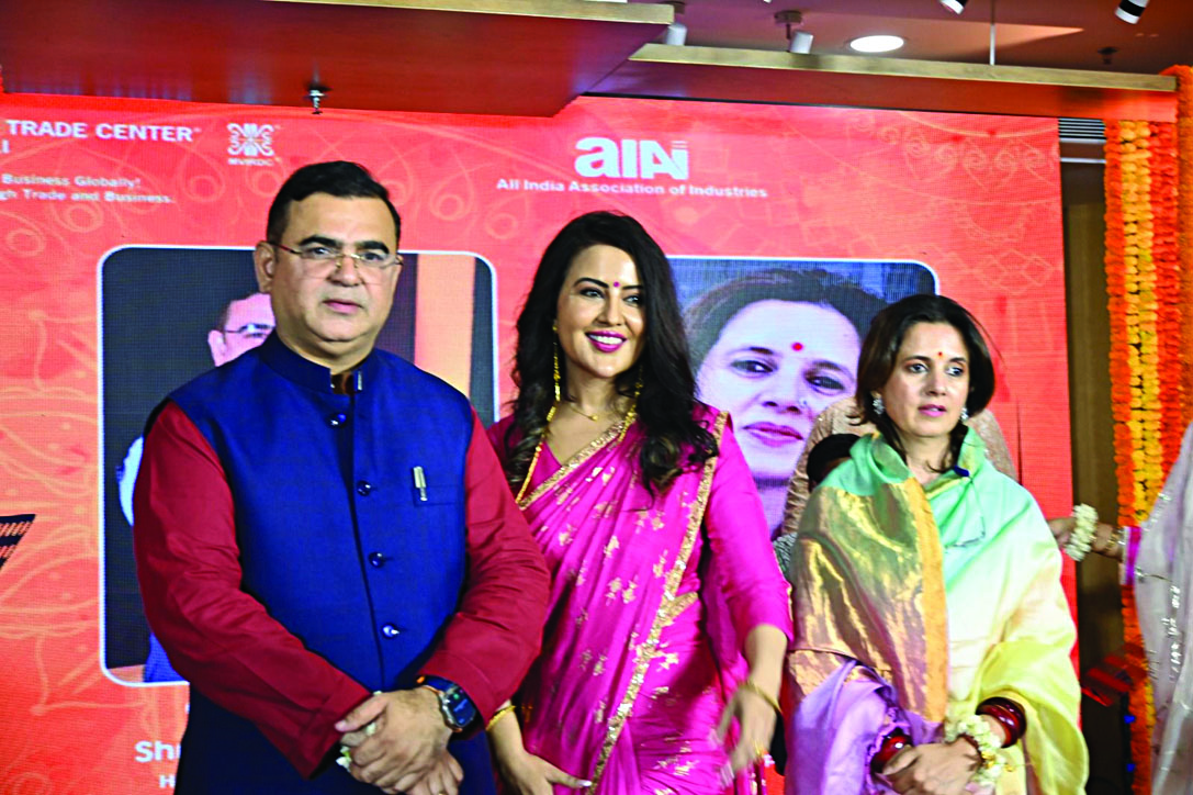 In the picture, from left to right: Ms. Priya Pansare, Director, Trade and Investment Promotion, WTC Mumbai, and Ms. Sangeeta Jain, Sr. Director AIAI, felicitating Shri Jayakumar Rawal, Honourable Minister of Protocol and Marketing, Government of Maharashtra