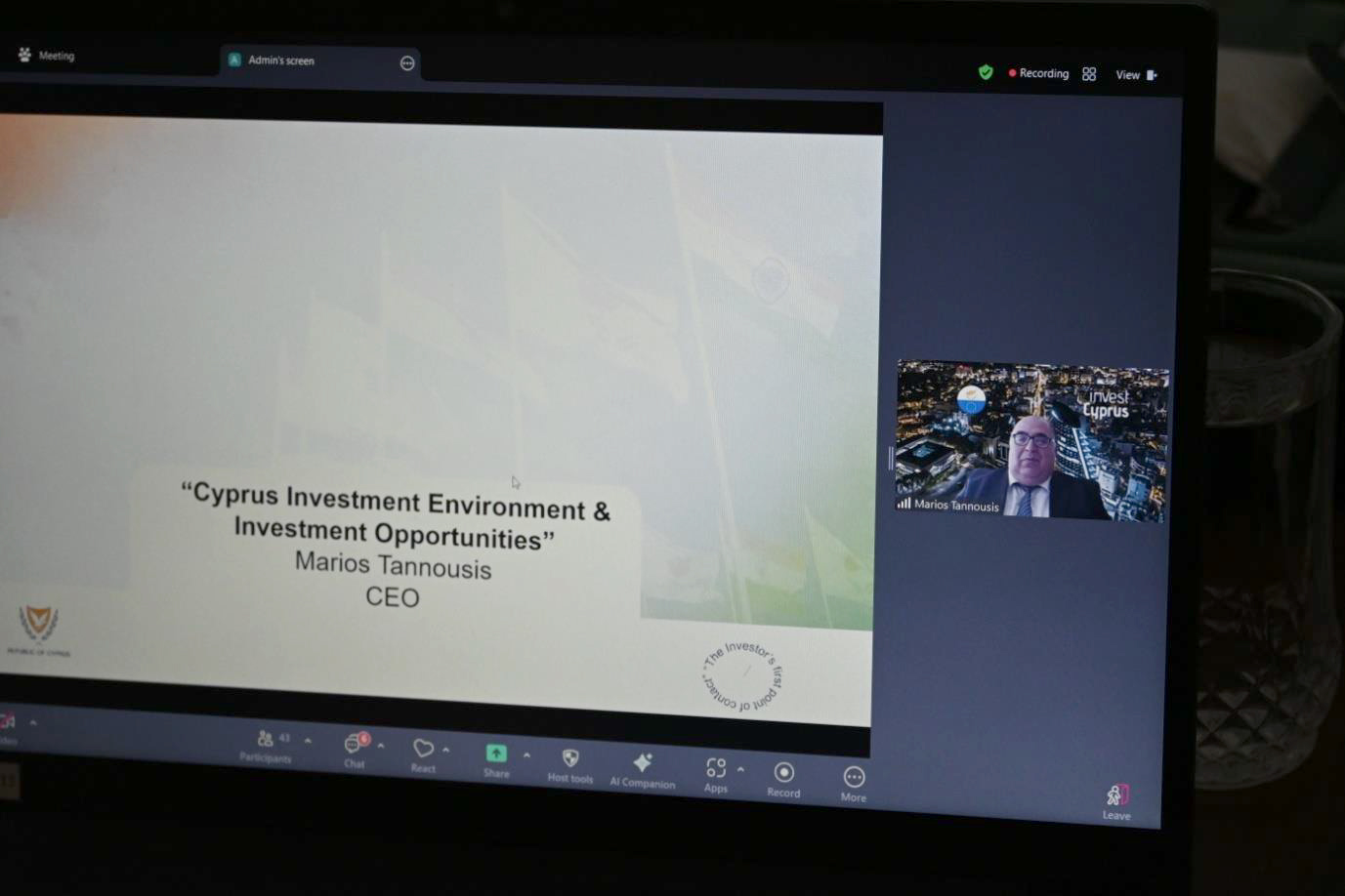 Mr. Marios Tannousis, CEO, Invest Cyprus, delivered a detailed overview of the investment landscape in Cyprus. The webinar emphasized Cyprus’s strategic geographic location at the crossroads of Europe, Asia, and Africa and highlighted its advantages as an EU member country with a business-friendly regulatory environment, competitive tax structure, and robust infrastructure.Invest Cyprus presented key sectors driving the Cyprus economy, including technology, shipping, tourism, artificial intelligence, education, renewable energy, and financial services.