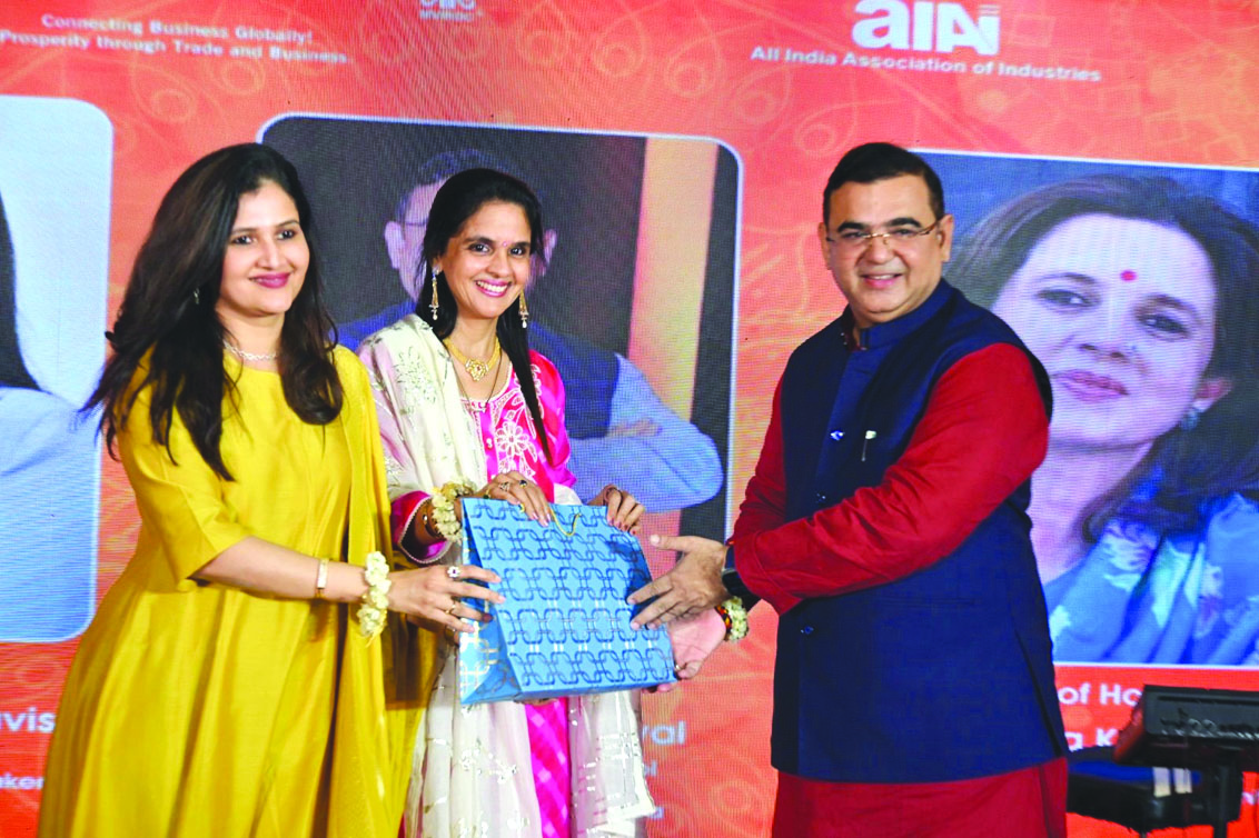 In the picture, from left to right: Ms. Priya Pansare, Director, Trade and Investment Promotion, WTC Mumbai, and Ms. Sangeeta Jain, Sr. Director AIAI, felicitating Shri Jayakumar Rawal, Honourable Minister of Protocol and Marketing, Government of Maharashtra