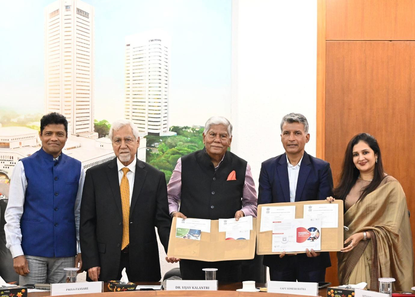 From Left to Right: Mr. Santosh Kotre, Director, Finance, Accounts and Admin; Capt. Somesh Batra, Vice Chairman, WTC Mumbai; Dr. Vijay Kalantri, Chairman, WTC Mumbai and President All India Association of Industries (AIAI), Shri Satya Narayan Meena, Additional CEO and Chief Financial Officer of Government e Marketplace (GeM) and Ms. Priya Pansare, Director – Trade and Investment Promotion, World Trade Centre, Mumbai